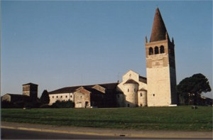 Entrando, si ammira la navata centrale con i muri poggiati ad archi sostenuti da pilastri e colonne alternati. Sulla parete a destra appaiono gli affreschi di scuola giottesca riproducenti la vita di S. Benedetto. L' altare di Sant' Agata è impreziosito da una pala settecentesca dedicata alla santa; vicino si nota un affresco del 1300 dedicato a Santa Caterina, protettrice degli studiosi e dei filosofi. A sinistra di chi entra, ecco l' altare con la pregevole statua della Pietà, segue un affresco rettangolare con sei santi e unp stemma dei Dogi veneziani. Il presbiterio è sopraelevato a causa della sottostante cripta, con un effetto di assorta magnificenza. Un coro in noce del 1400 sottolinea il fondo dell' abside, impreziosito da una coeva ancona d' altare scolpita in pietra, con al centro la figura di S. Pietro.